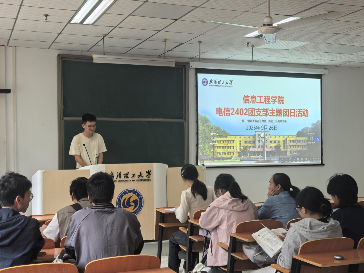 为激励支部成员深刻理解“上海精神”,增强为国家高水平对外开放和构建人类命运共同体贡献力量的责任感和使命感,电信2402团支部于9月26日9:30在爱特楼103开展主题团日活动,此次活动以“凝聚青春奋进力量,共赴上合美好未来”为主题,由团支书陈伟康主持,电信2402团支部全体成员参与。