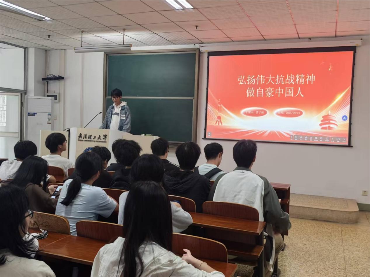 为深入学习贯彻习近平总书记在纪念中国人民抗日战争暨世界反法西斯战争胜利80周年大会重要讲话精神,引导团员青年铭记历史、缅怀先烈、珍爱和平、开创未来,9月24日13:30电信2406在爱特楼102召开了以开展“弘扬伟大抗战精神,做光荣自豪中国人”为主题的团日活动。活动由团支书曹子涵组织,通过分组讨论和集体分享的方式开展,电信2406团支部全体成员参加。