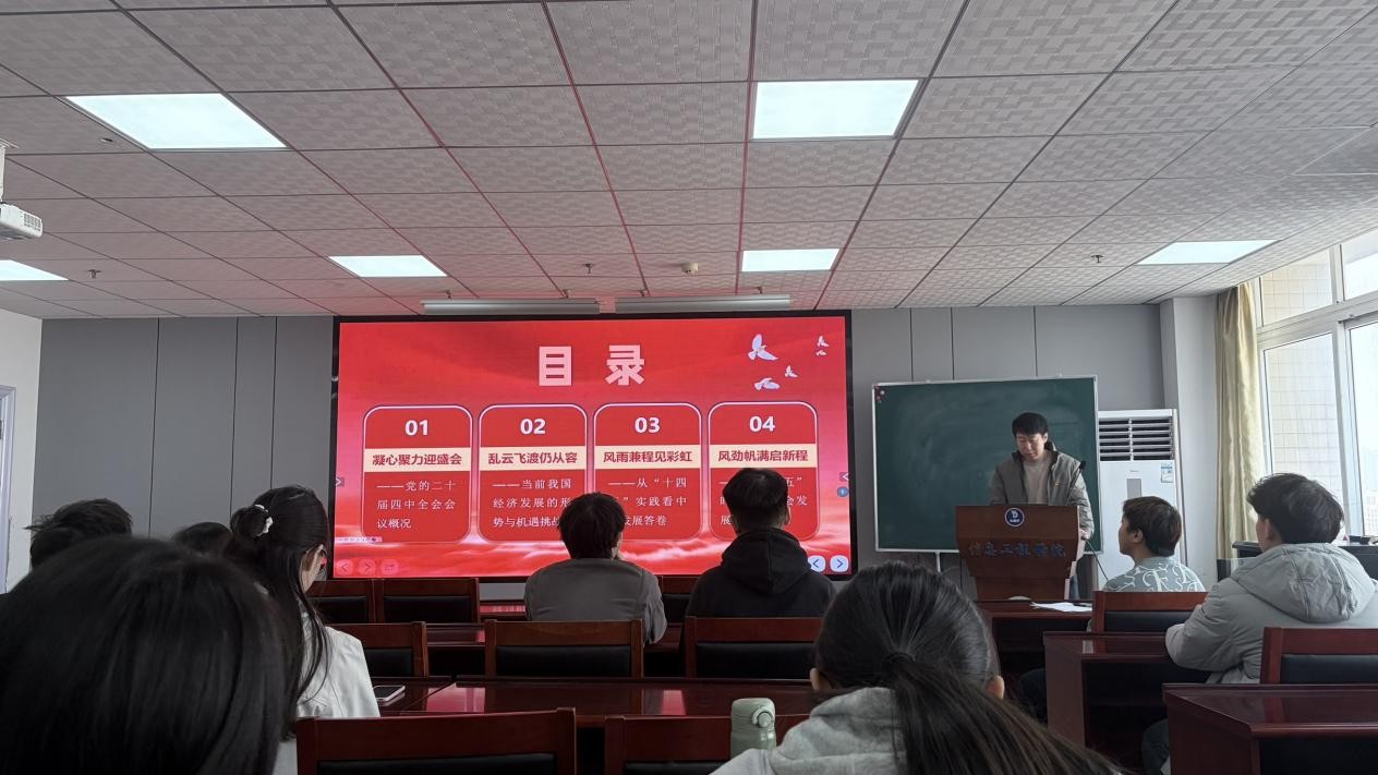 整场党课脉络清晰、内容充实,既有理论高度又有实践温度,既回顾了发展成就又明确了未来方向。与会人员认真聆听、仔细记录,纷纷表示深受启发、倍感振奋。大家一致认为,此次党课是一次深刻的思想淬炼和精神洗礼,不仅对党的二十届四中全会精神有了更系统的理解,也对“十五五”规划蓝图有了更清晰的认知。接下来,将以此次学习为契机,持续深化理论学习,强化责任担当,把学习成果转化为干事创业的实际动力,以实干实绩为学院高质量发展和国家现代化建设贡献力量。