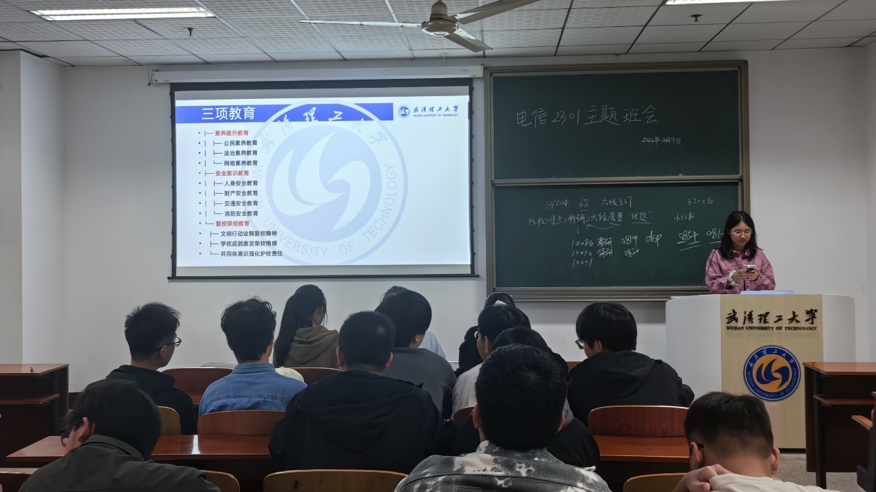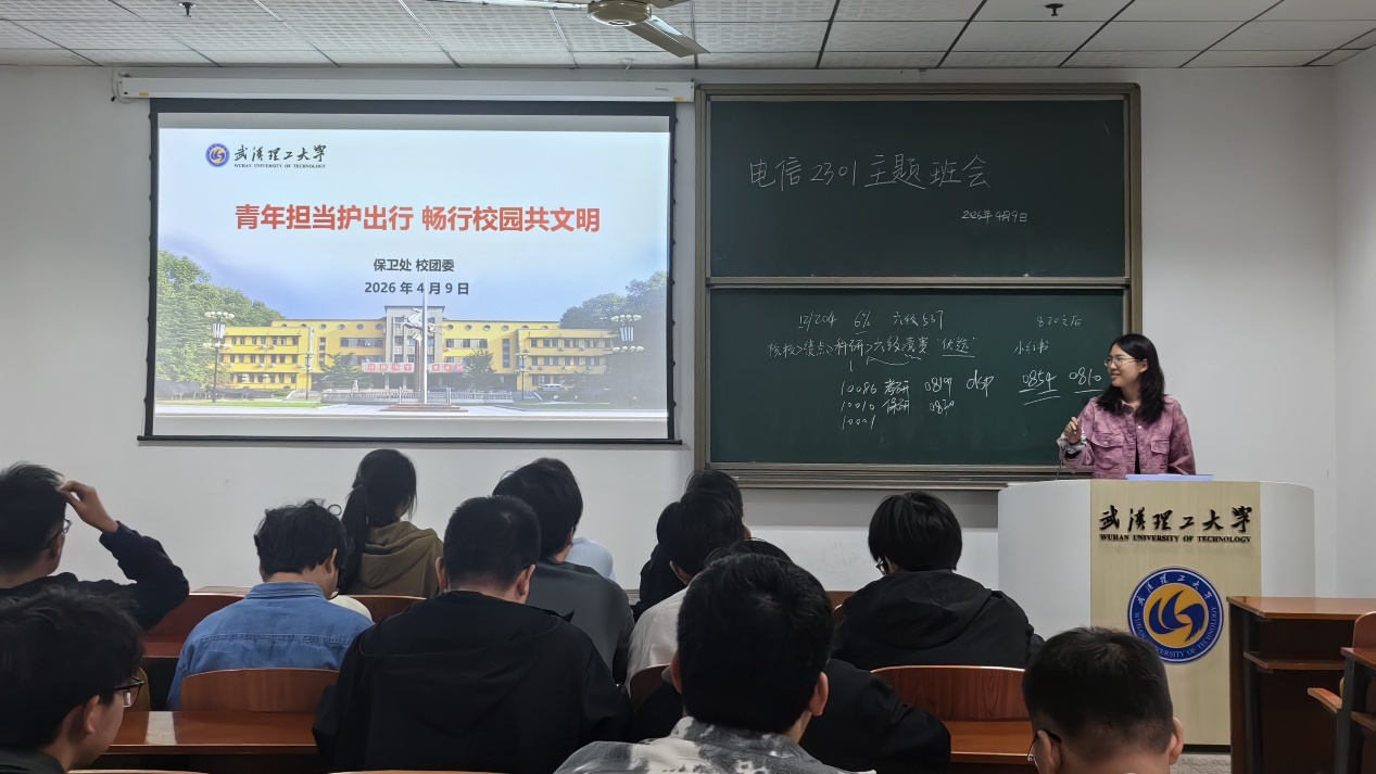 为了加强校园安全意识,引导青年学生树立文明出行的理念,营造安全、有序、和谐的校园环境,电信2301于4月9日16点在爱特楼104教室组织开展了“青年担当护出行,畅行校园共文明”主题班会。本次班会由班长朱佳欣同学主持召开,全体同学共同参与。