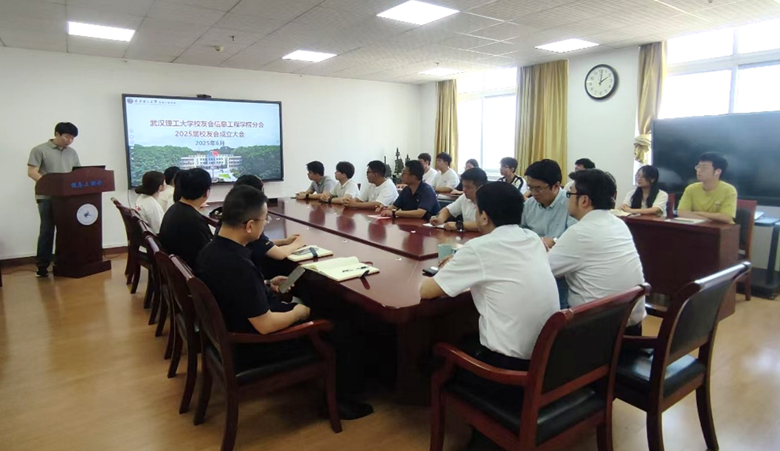 为加强校友联络,凝聚校友力量,搭建校友与母校沟通的桥梁,6月14日下午,武汉理工大学校友会信息工程学院分会2025届校友会成立大会在爱特楼1604会议室举行,学院党委书记张虎、院长李政颖、副院长徐文君、副院长郭志强、党委副书记刘浩杰出席会议,会议由学院辅导员黄荣桢老师主持,毕业班辅导员及2025届毕业生校友代表参会。