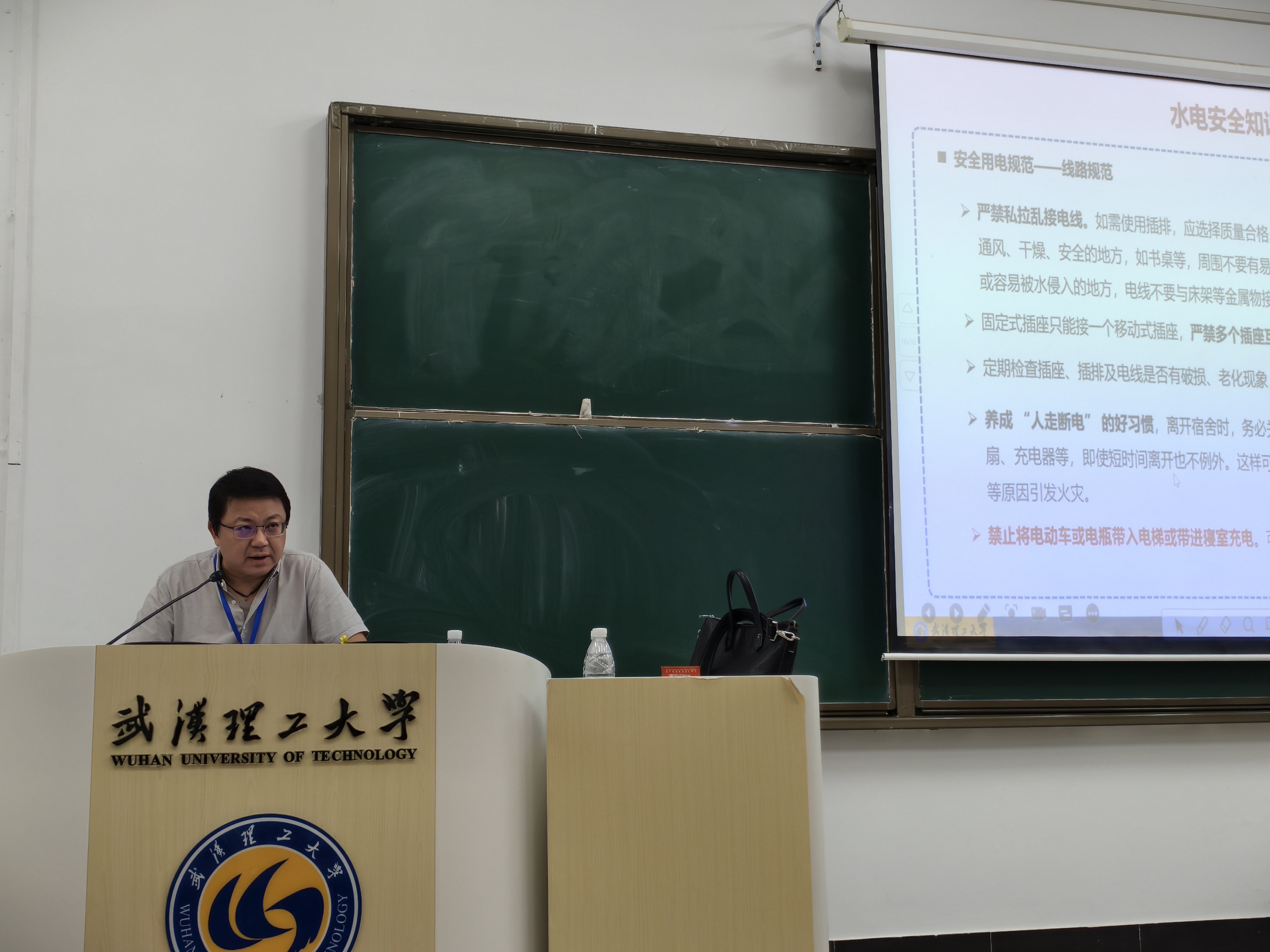 展现学校风貌,增强对学校的认同感与归属感。后管处吕志刚老师向同学们普及水电安全知识,宣传节水型校园建设成果。介绍了后勤管理的主要职能,包括校园餐饮、宿舍管理、水电保障、环境卫生及基础设施维护等。他强调同学们要爱护公共设施,注意节约水电,共同维护整洁、安全、舒适的校园环境。